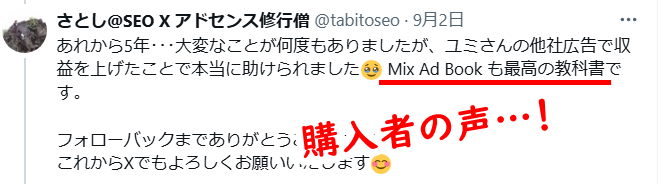 本コースでは、私が独自に研究・開発したノウハウをまとめた、他社広告の教材『Mix Ad Book』を特典としてご用意しています。