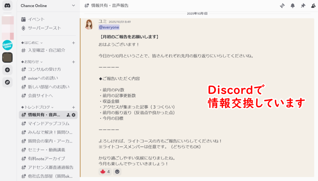 プレミアムコースご参加の方は、Chance Onlineコミュニティに参加いただけます。
